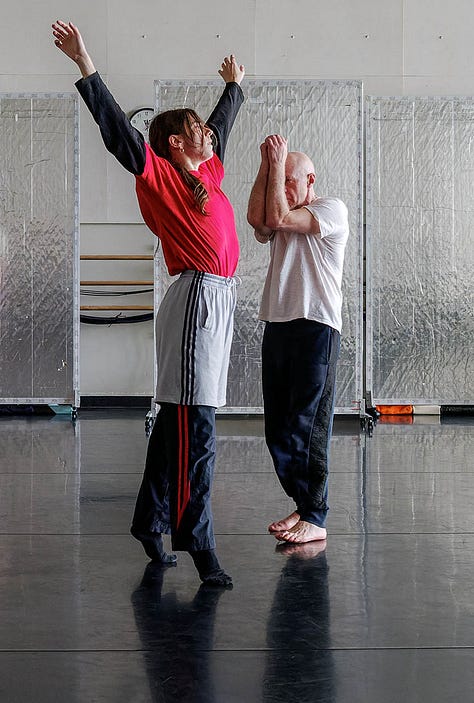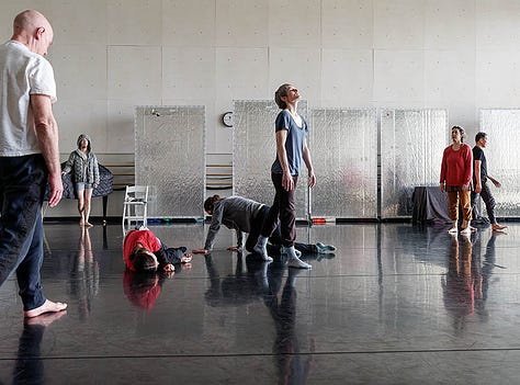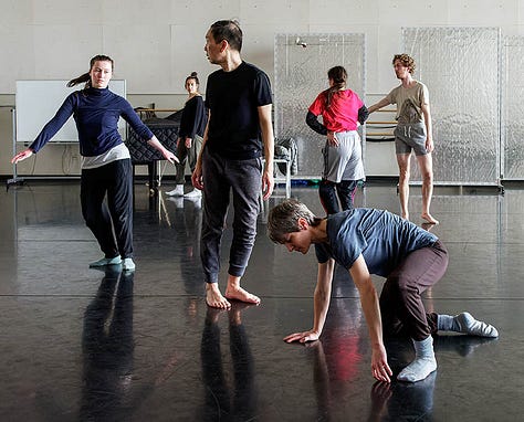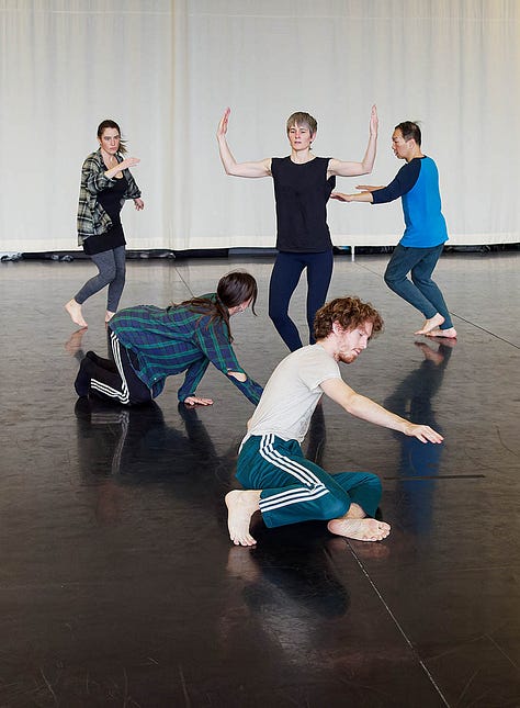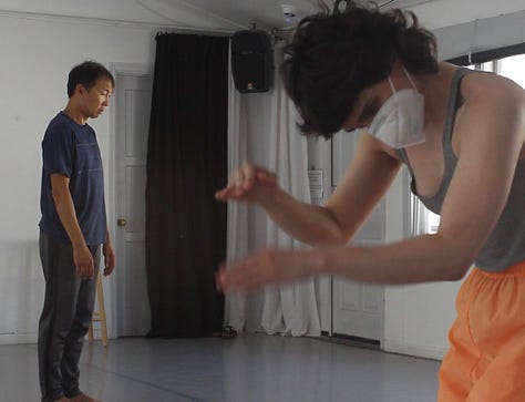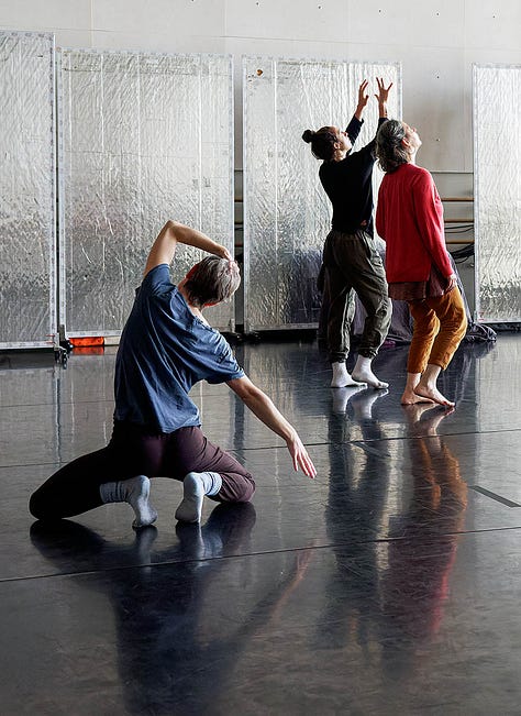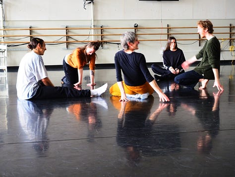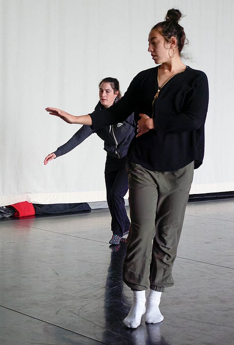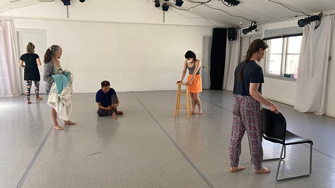I loved every minute of both 2022 residencies working on the Iris Dance with these gorgeous people, but I did very little reading or sleeping - or eating for that matter. The thinking and writing I did was feverish, ferocious. Not totally reliable but somehow still actionable. Often it was so exciting for me (though the dancers may have felt otherwise) that I had to consciously slow my heart and speech rate. Was it the rush of witnessing dancers making fascinating choices? Seeing long imagined structures becoming embodied? A still COVID-conscious contact-high from getting to move as a group in one room together? All of this and then some for sure.
